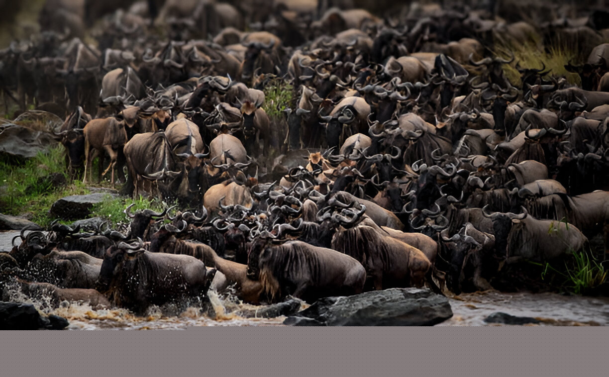 🐃 Wildebeest crossing the Mara River in motion blur